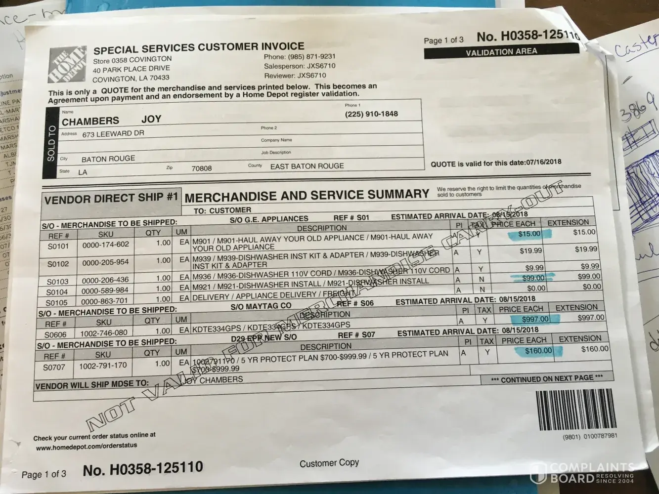 I ordered a washer & dryer from Home Depot in June. I had to wait over a month & a half for delivery and installation. First of all, delivery team was 2 hours later arriving than the 4 hour time span stated to me. Second, they immediately told me they couldn't connect the dryer, "wrong cord." "New style now" according to one, but another said, "I've NEVER seen one like this!" Next, I paid for install but they never even tried to connect dryer vent hose. Moving on to the washer, they first tried to say water lines not long enough, could set my washer "sideways, " then connected them twisted at first, (water running everywhere), then supposedly straightened but "you've got a leak!" from the hot water line. One said to another, "you over tightened it, you need to loosen it to get some pressure off ." What happens? The guy turns it tighter! He finally just turns the hot water off due to the leaking. Next I'm told that there isn't a discharge hose with the washer I bought. I said there has to be and they insisted that no, there wasn't with my model . I told them that sometimes they were put inside the washer tub. Yep, there it was….they acted surprised! They repeatedly asked me for pliers and I did not have my toolbox with me that day. "They said, " YOU don't have any pliers? " in disbelief! After that, they want be to sign that I'm satisfied with my delivery & no damage done - I refused & a female started yelling to the males, " MOVE THIS WASHER & DRYER OUT, she doesn't wanna sign!" During this time she's also snapping multiple pictures of inside of my laundry room. 2 males return inside and one of them starts snapping pictures & I said, "That's enough! How many pictures of my house do you need?" The guy informs me that those were the FIRST pictures taken & I said otherwise. He then wanted to know who else took pictures & I informed him. He proceeds to tell me I HAVE to sign and I said "No I don't." He then showed me a place before my signature where I could write my dissatisfactions and when I started doing just that, he grabbed it from me and told me that I HAD TO SIGN! The female is yelling, "if she don't, we're taking the washer & dryer out!" I said to go ahead & remove them! The guy replied "NO I'M NOT!" He shoved his cellphone in front of me for a signature again and all THREE of them surrounded me in a threatening and intimidating way. I am a small petite woman, all of them much bigger & I just wanted them out of my house. I told them I would call Home Depot myself. They left with one guy & the female arguing, he was telling her she couldn't be taking pictures. It didn't stop her from standing in front of my house & snapping another one.