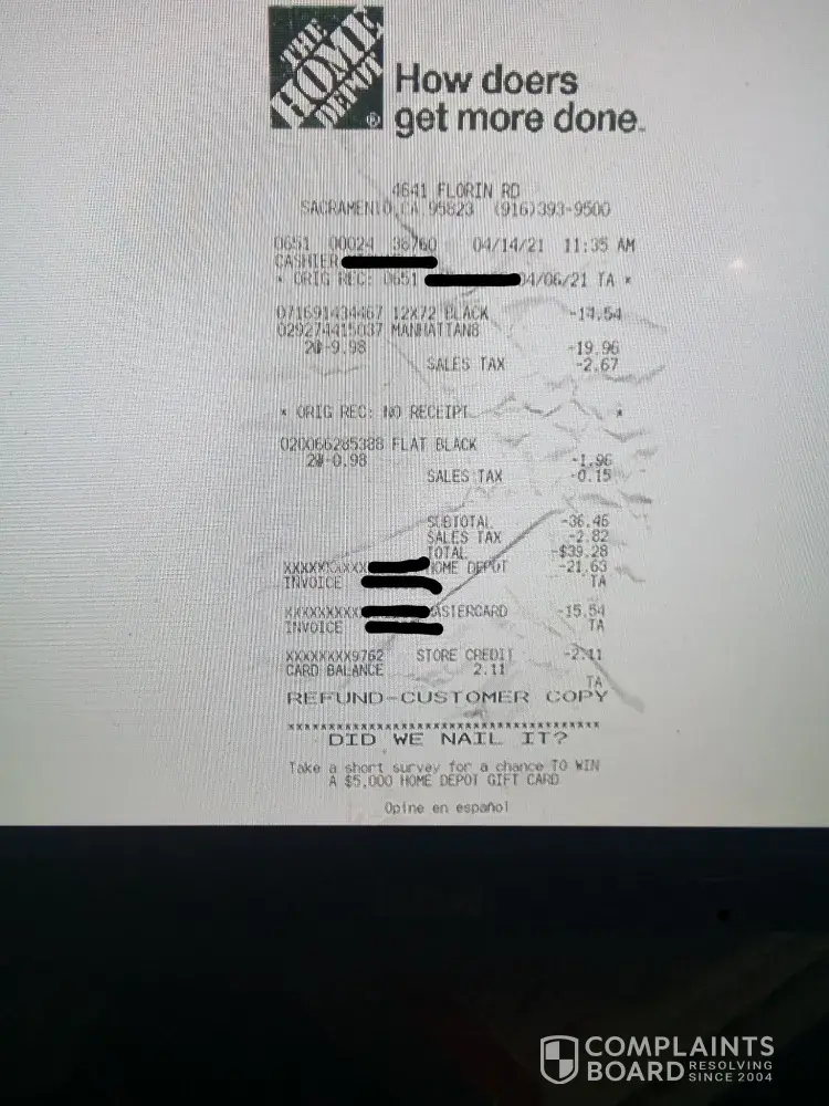 Desired outcome: No Compassion with home depot card which i believe is citibank?