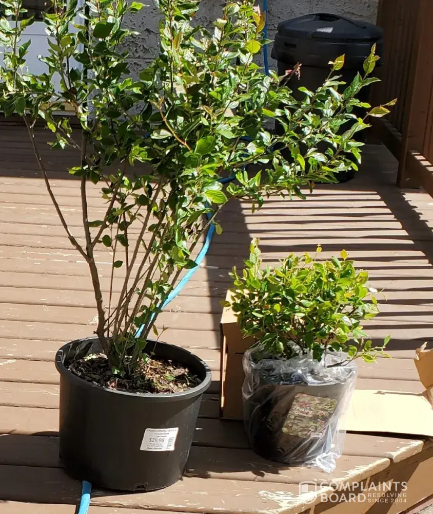 Home Depot Online purchase of shrubs cost more and were smaller than expected