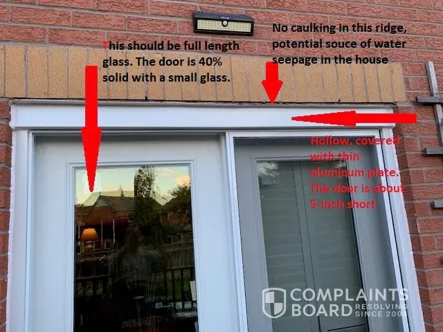 Installation of wrong patio door and blackmailing