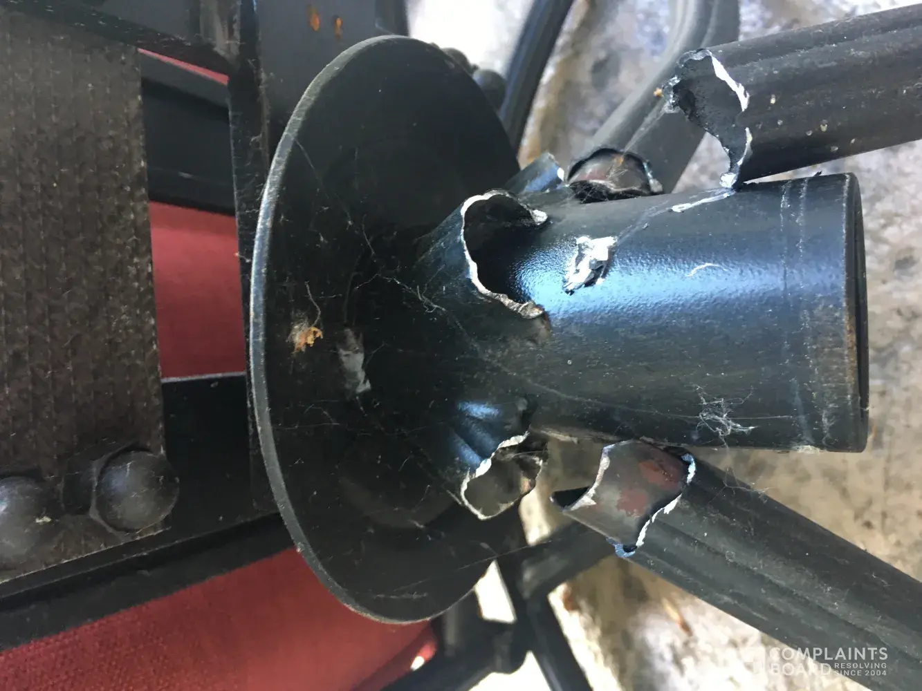 Once again! Our Hampton Bay swivel rocker patio chair broke at the base! My husband is not a big man, only weighing 175-180 lbs, and he sat in the chair and fell backwards onto our concrete patio! This happened LAST summer as well! Company sent a replacement... it took about 7 months to finally get it though! Finally summer arrived in upstate NY and we brought the furniture back out, put new base on the chair that broke last year. And tonight, BAM! Happened again! This is such a safety hazard and I think something needs to be done! My 81 yr old mother (who weighs 90 lbs soaking wet) was sitting in that same chair the other day! What if chair broke when she was in it? Hampton Bay should have a recall on these chairs and replace everyone's chairs ! How can we get this to happen!