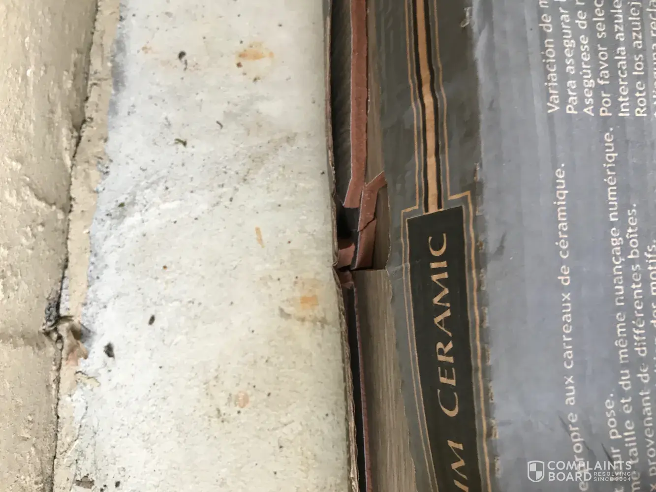 I can't believe the terrible service, the Home Depot associates moved every thing from outside to the porch, the cardboard of the boxes are so wet, a lot of tiles are broken to the point that you can't even lift some of the boxes because they are falling in pieces (totally broken) at lease 5 of them, 2 concrete bags are hard and I cant find the separator of the tiles.