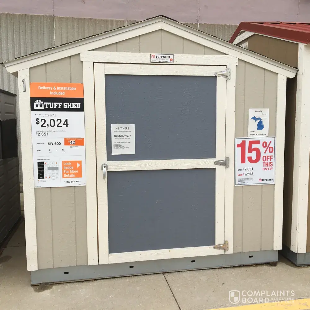 Bought shed from home depot store # 2758 on 3/1/17 missing parts / two door closer's stops display showed these are included. did not have"for display only" stickers on them as tuff shed claimed. several calls with no satisfaction. home depot rep. bill apel [protected] no help just gave me tuff shed's # and was told by steve, tuff shed rep. they do not sell those but could install them for an additional price. the display shed door had hinges, handle & locks. pamphlet had no upgrades on these dsoor closer's. I did not get what I was shown. I do not need them installed just provided. I sent pictures and have filed a claim, no response. the upgrades I ordered was one additional door, pt floor & roof vents. these door closer's I believe are part of the door function and they keep the door from blowing shut on me. it also closes the door tight. please help resolve this. home depot sells these door closer's. (see last photo) what makes this worse I brought this to tuff sheds attention and the display still has no display stickers on the closer's. this should have been a simple fix for 125.00 dollars. john martin [protected]