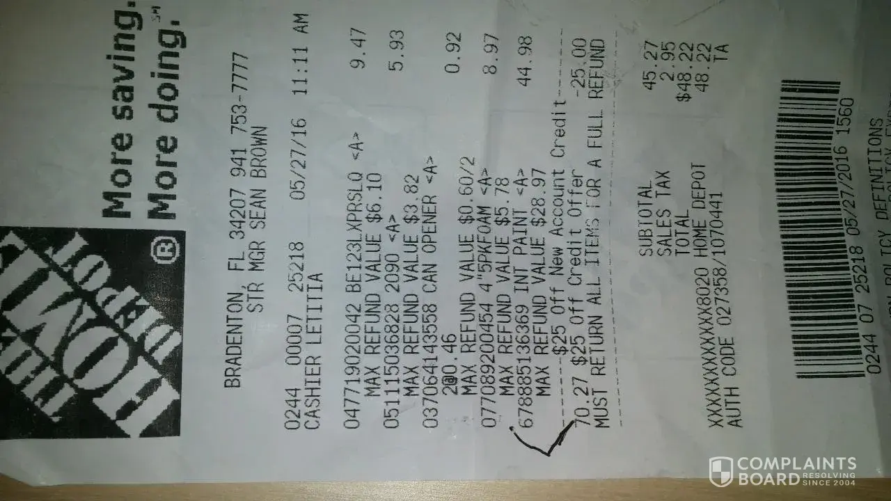I lived in FL and went to a HomeDepot in NY to help my mom fixed her apartment. In a hurry and talking to my brother at the time, i did not noticed the cashier scan items too many times until I got to my mom's place. I went to a HomeDepot closest to her place trying to get the issue resolved but was told to go back to the HomeDepot where the purchase was make and they can review the video. Long story short, at the HomeDepot where I made the purchase, I was told there is nothing they can do. I am so upset because they are not even willing to fix their own mistake! I will not purchase from HomeDepot again.
