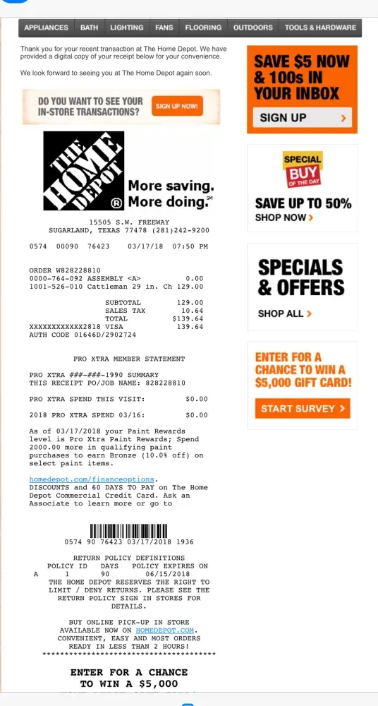 Never buy online from home depot! Worst customer service. Waited 14 hours for fencing to be delivered. Never showed, no tracking and calling the 800 was a complete wate of time.