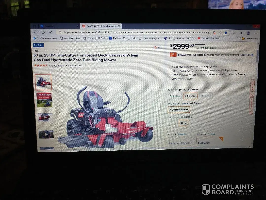 I was shopping online and found a lawnmower on sale and the price was not honored for that price they said they could not do it .When i went to the store it was advertised on there computer also at the same price I have a pic of the advertisement .they did not honor it and it was advertised