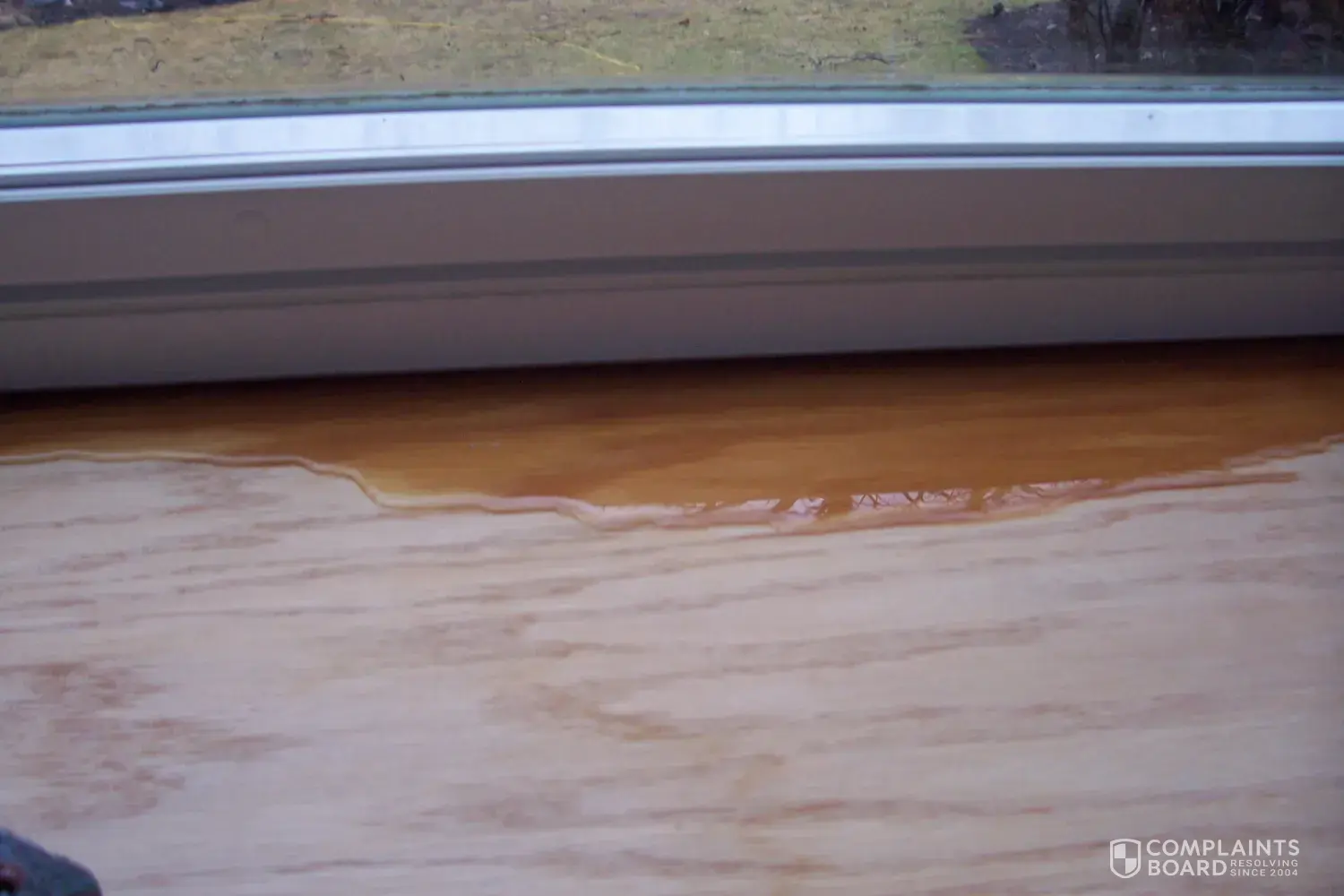Since day one, the bay window has leaked, soaking the sill and staining the wood badly. The window attachments have snapped, and several had to be replaced.