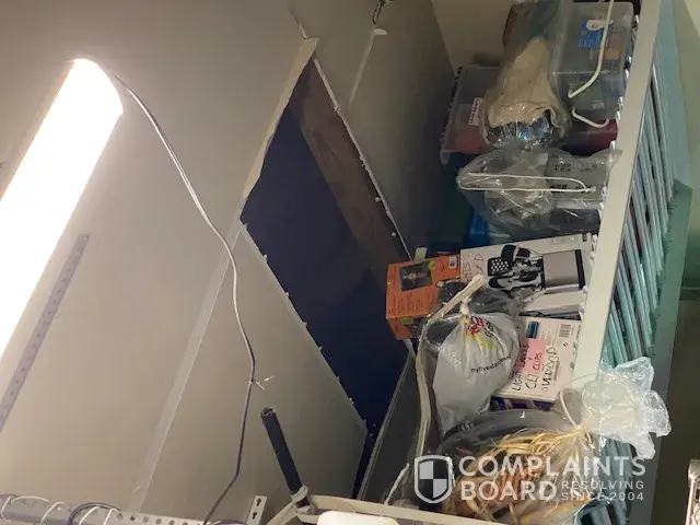 We hired a home advisor pro and he damaged the sheet rock ceiling in my garage, the sheet rock fell onto my motorcycle and damaged the paint.