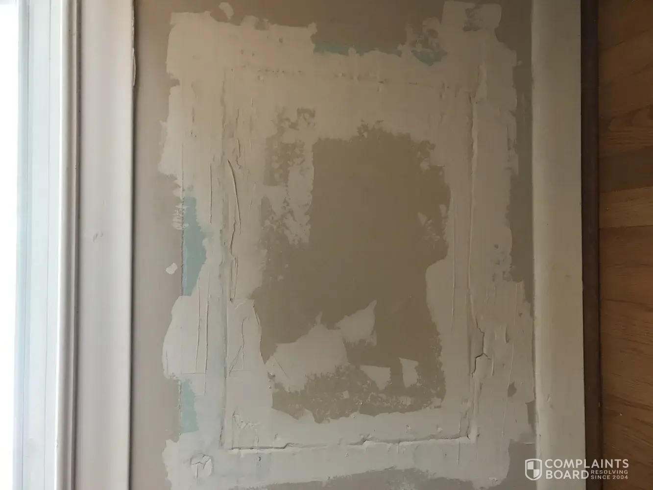 I would like resolution ASAP. I now have an exposed section of an exterior house wall that needs siding put back on it, and a small area inside the house, opposite that hole, that needs another coat of joint compound. Completion should take no more than 90 minutes.