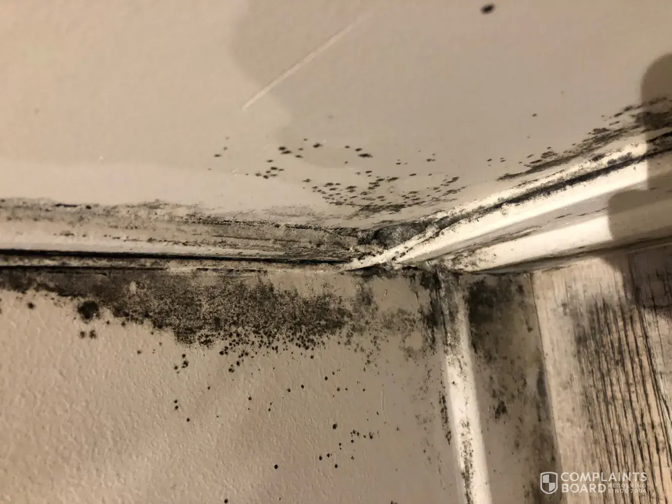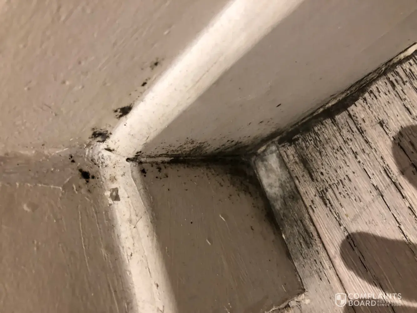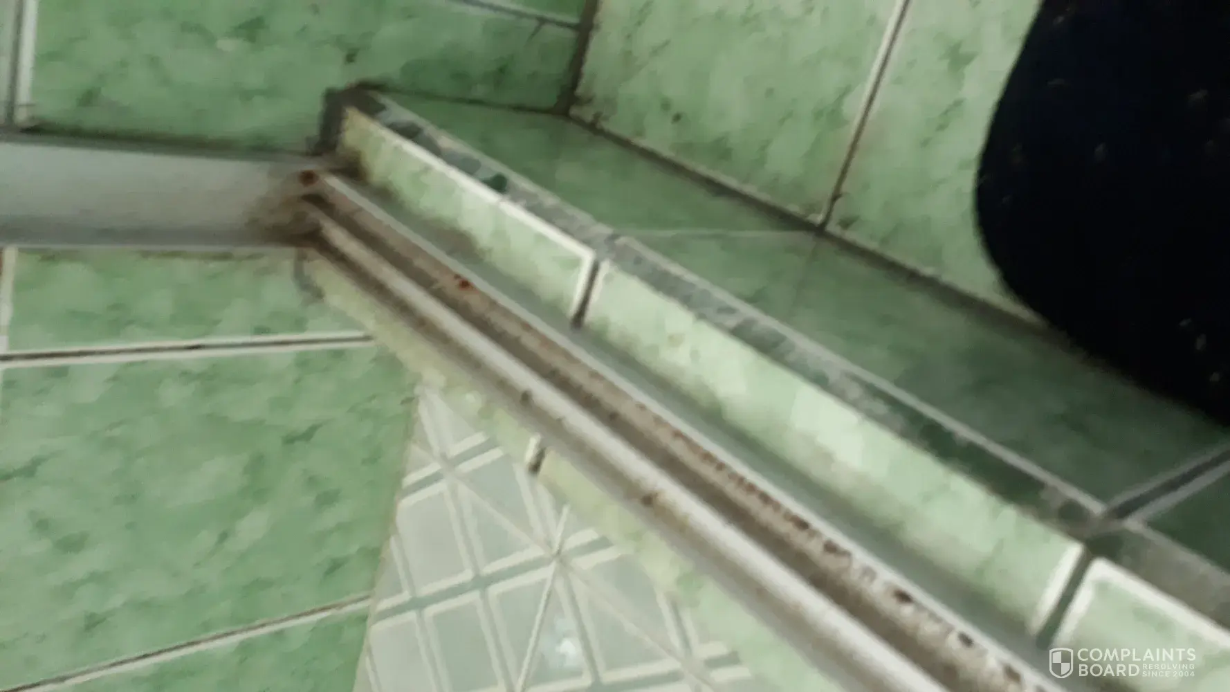 Grime in bathrooms looks like walls never cleaned and extra bad in corners and shower rail.