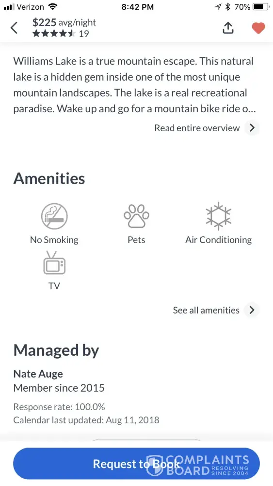 It is now Aug 18th and I have not heard the outcome of my complaint. Nor can I see a way to leave my negative review on the property page. I have e-mailed 2 or 3 times and had no reply