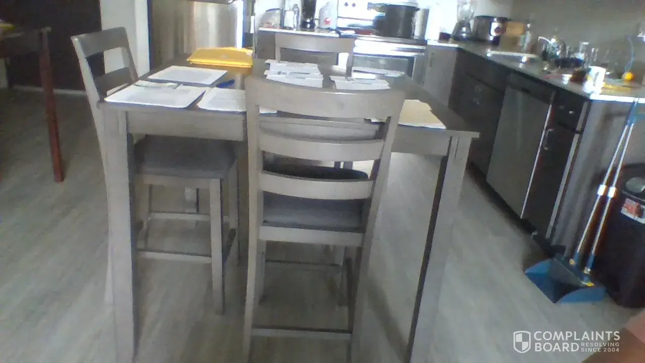 Sore No. 3052, I Purchased a Dinette set and sectional from Homechoice Furniture on 5/20/2023 with it arrived on 05/27/023 with the dinette set one of the chairs had a crack in the leg of the chair, I did not accept that chair contacting Dave a Homechoice location in Roseville MN stated that he would have another sent with the delivery of My sectional I purchased the same day as the dinette set they arrived on 06/03/2023 to deliver the sectional It was the same issue a crack in the led of the chair I did not accept the chair also the section had a major thread dysfunction that I didn't notice until the next day and the guy that drilled that legs on the sectional drilled the legs in a dysfunction manner not lining up with the corners of the sectional. I have yet to here from Dave in regards to when I with get the forth chair to the dinette set I also let Dave know that he did not have to build that chair that he can just bring it and I will have it built myself because of the last chair, I would like for these issues to be addressed and resolved with in 14 days of I will not fill the need to be responsible to pay for their mishaps.