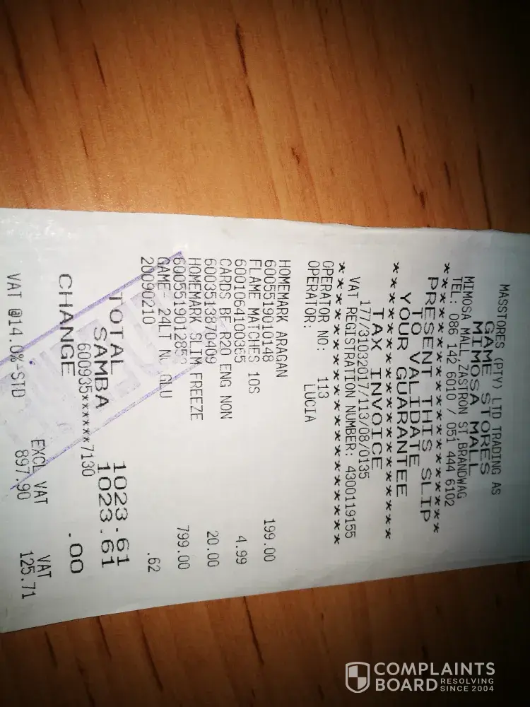 A few minutes later, my husband arrived and asked to speak to the same gentleman. My husband insisted on a refund. He offered us anything else in the store and we refused. After some time, with a whole lot of arguing between the two of them, the gentleman said: "Ok, I will give you a refund. But, can I please have both of your Identity documents. I want to make copies which I will give to Centre Management and I will have both of you banned from entering this mall ever again". We responded by giving him our Identity Documents and told him that we do not care what he does with the Identity Documents. He then told the female worker to give our money back.