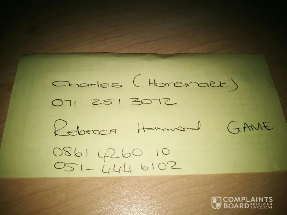 Tried to phone head office of homemark, nobody actually cares or are concerned regarding my issue (nb time to me, is of the essence), homemark does not think so.