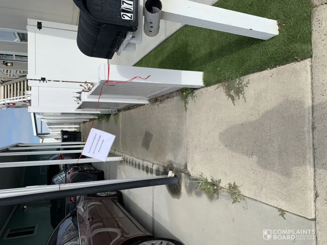 The tenant in Space #207, a salesperson for Hometown America at HBTS has taken it upon herself to block the walkway next to her carport on Pacifica Ln to access the pool and dog park on Cambria by placing a fence across the walkway. She is also placing her trash bins on this walkway and has put up signage and cameras. Please open this walkway back up. I am a 30yr resident here and her actions by taking this upon herself to close off a walkway are outrageous and unacceptable.