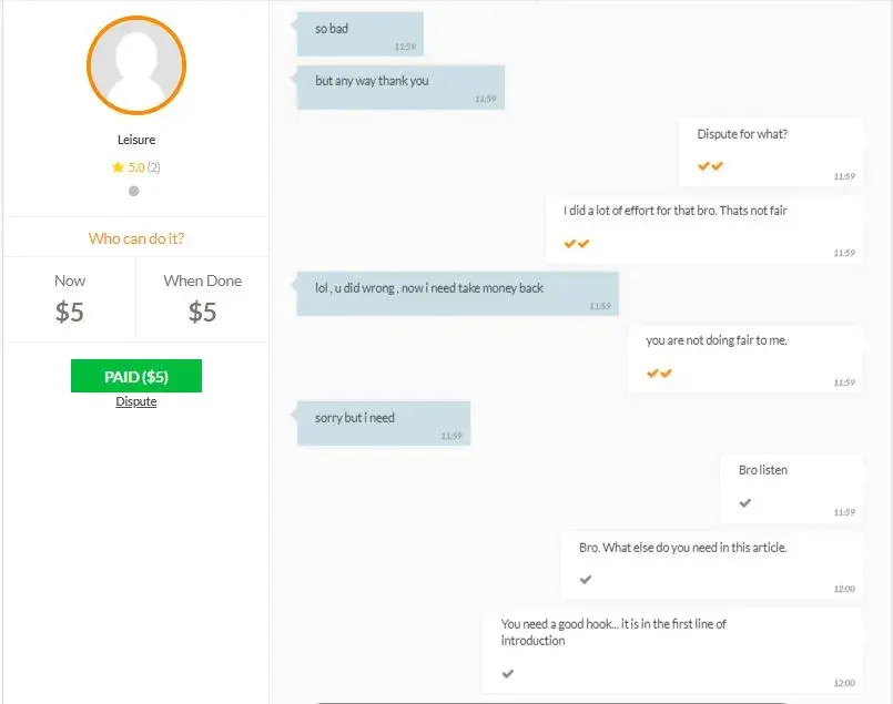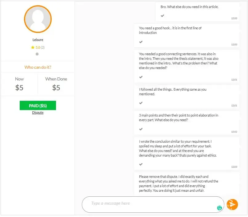 I have requested for someone to complete an essay for me. I responded back to someone and the fee was $40 total. The user has completed my essay but when I read it there were gramma defects, it looks as if she used different sentences from other people articles and overall it looks like amateur work. I have requested a refunded and the user did not full deposit it back into my account