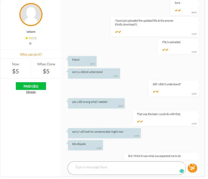 I posted the perfect and accurate work as an answer but after downloading the work, Student made the dispute and demanding his money back. I also put the complaint in homeworkmarket help but did not get any response. Somebody guide me what to do to secure my amount and hardwork from being scammed by the student. Answer was perfect but student told that it is wrong and he just put the dispute there.
