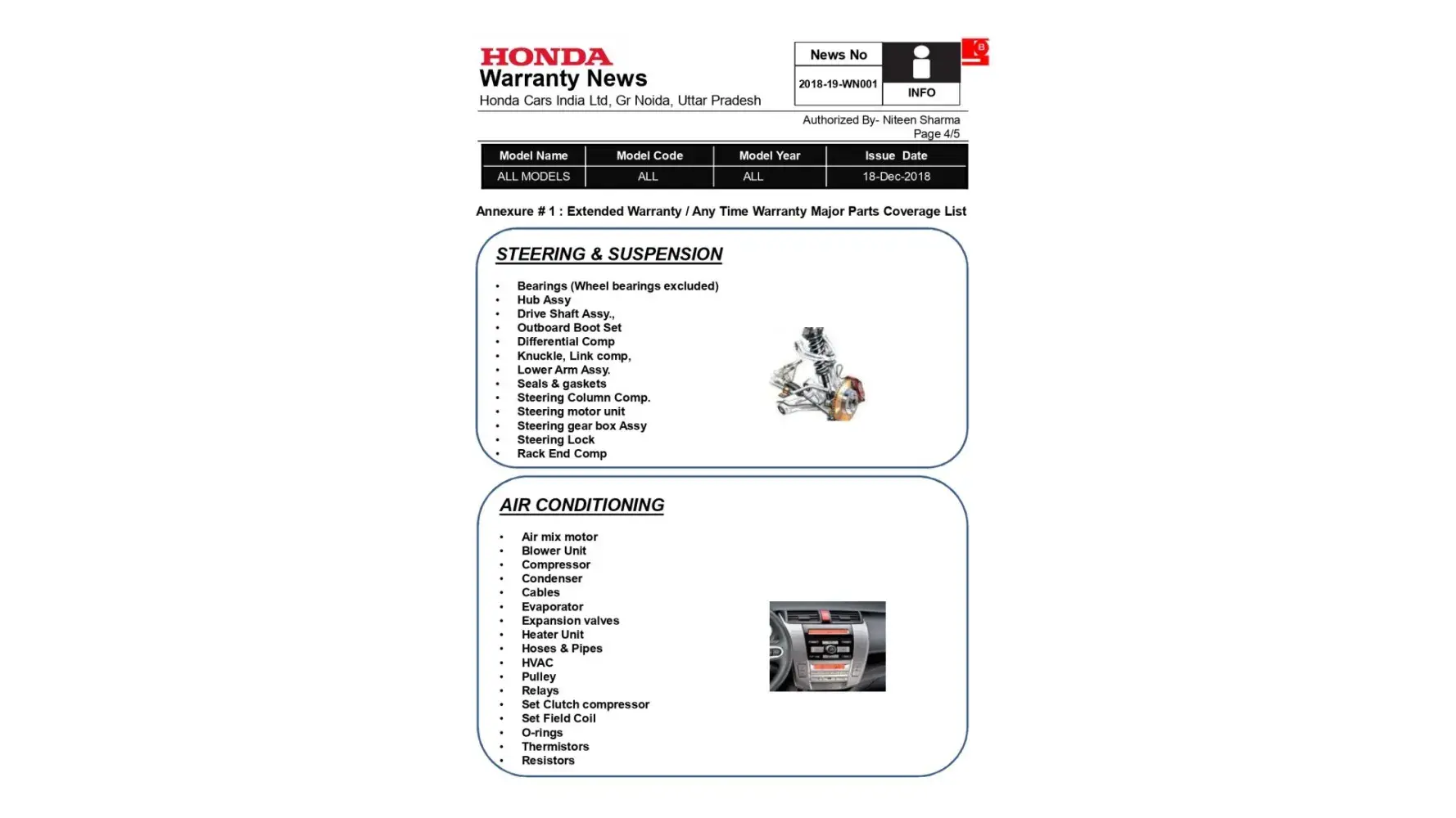 I purchased this vehicle on 2/5/19 from Courtesy Honda, New Delhi but i was harrassed & cheated from day one by taking all the money & the not giving the extended warranty to me & the RTO registration etc. Post the same i started contacting the dealer & writing to Mr Rakesh Goel who is the Sr VP as well but there is no revert to my emails. In fact the dealer misbehaved with me & today when i went to get the car services from another dealer work shop i was told that this vehicle was sold on 31st Dec 2018 & the warranty starts from then, which means it was resold to me with informing me of the same - which tantamounts to cheating & fraudulent activity on the behalf of the dealer.