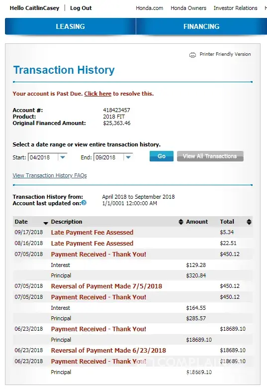 Honda Financial Services my vehicle and their horrible service crooks!!!