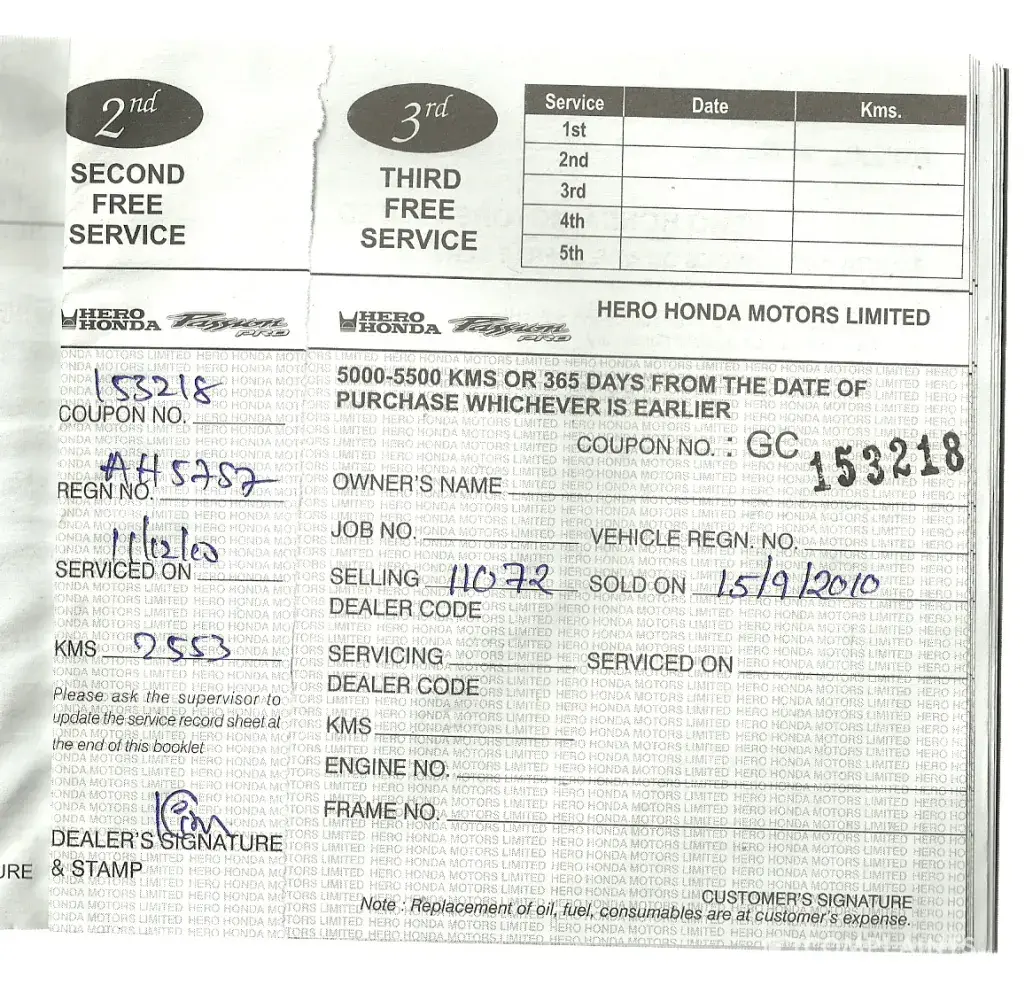 i have purchased a Hero Honda- Passion Pro on 15th Jan 2017 from Yuva Motors-Faridabad,