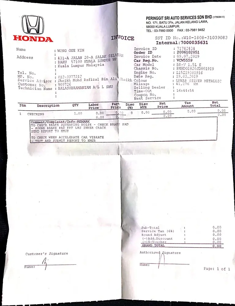 Please be advised that I bought brand new honda civic (full option) from honda avenue, islamabad, pakistan in octber 2019 having engine # r18z12954035 & chasis # nfbfc6667kr057529. The vehicle had a manufacturing faults hence within few days of delivery, I was forced to get it inspected from honda authorised dealer in islamabad, pakistan i.e. Honda margalla, islamabad on november 02, 2019 and revealed that both the front disk plates are crooked and requires replacement. Complaint was lodged with honda atlas cars pakistan having refernce # [protected] for resolution purposes. On september 09, 2019 I visited honda margalla again where it was informed that honda atlas cars pakistan instructed them to repair disk plates. Despite my insistance they repaired the break pleates. See for yourself what they have did to my brand new car driven only 600 km. I am sure these are not the standards of honda japan.