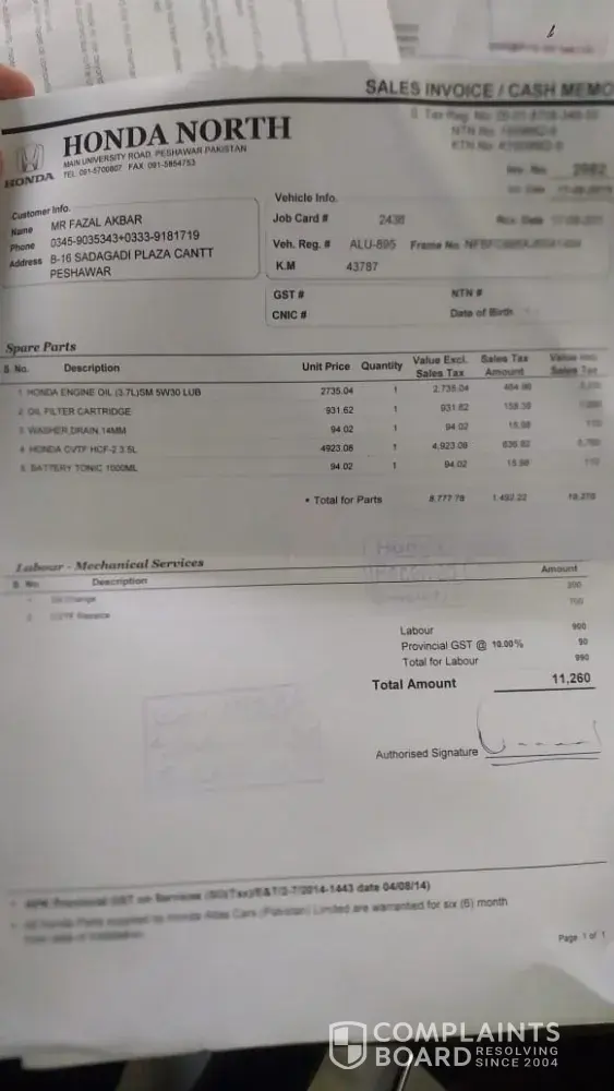 I am a loyal honda customer since 2005 and always got due respect of my opinion and customer care but this time the way I was treated by your local representatives (honda atlas cars pakistan & honda margalla islamabad pakistan) and handled my brand new car. Am very disappointed. First of all getting demaged part in brand new car and then instead of being apologetic and replacing the demaged part with new one. They almost forcefully repaired 600km driven brand new car. I have paid pkr 4.00 million approxmately from my hard earned money and what I got is demaged vehicle and mental torture.