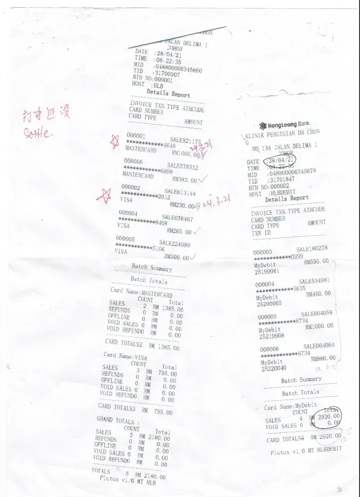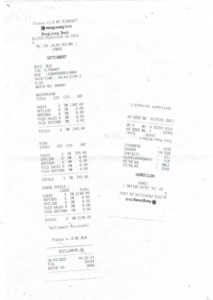 The settlement for 24th March 2021, 19th April 2021 and 27th April 2021 were done respectively on 28th April 2021 as following: