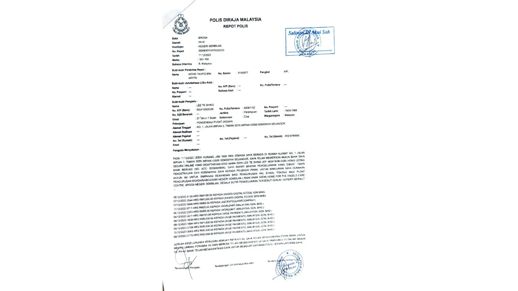 Here I want to file a complaint against Hong Leong bank regarding regarding this.incident and I want the money returned to me as soon as possible.