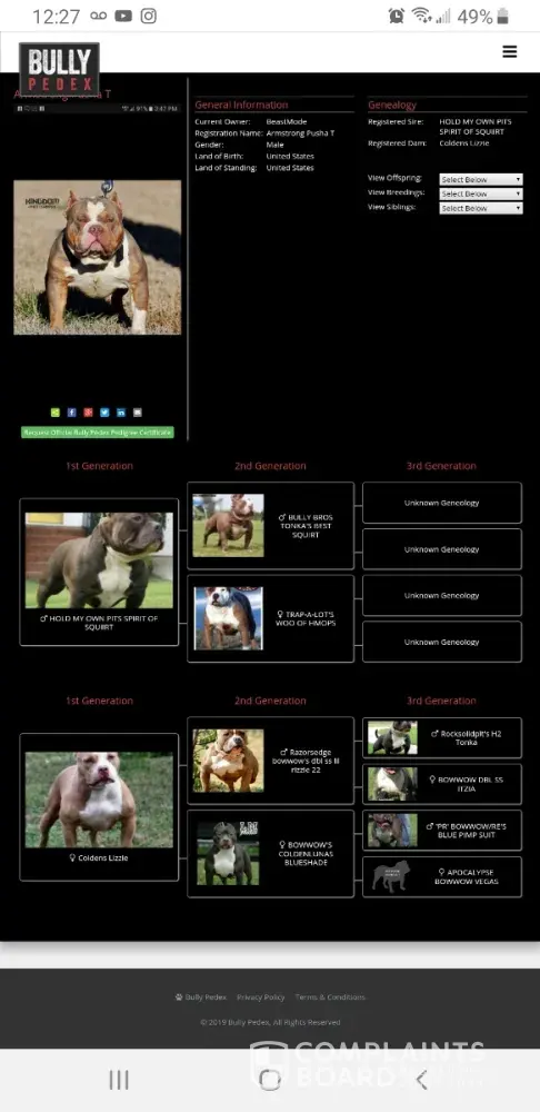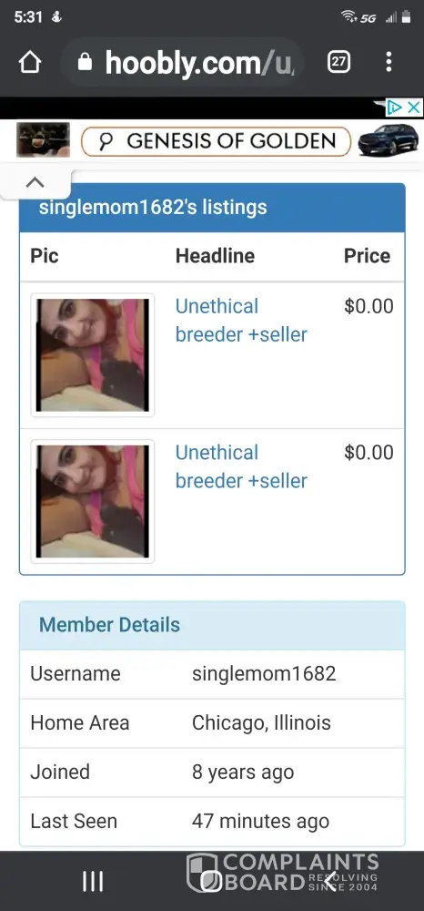I dont know what it is that can be done, but this ad should be reported as a scam so that no one else did the same thing we did. I am sure this has happened already as she has two litters of puppies for sale on the hoobly.com site.