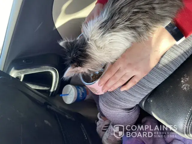 I kept you up to date that friday of everything that had gone on. The fact she wouldnt eat since we brought her home, the blood in diarrhea, the projectile vomiting, the worms and that she was so sick they were hospitalized her friday Saturday sunday and monday morning. I feel giving a sick puppy who's ribs were sticking out when I picked her up from you and once you called my doctor and she said yes she was hospitalized here and I handed you the records for her, you would have seen you were wrong. Why the hell would I drive 8 hours to pick her up with intentions of wanting to drive another 8 hours and be out 600 dollars for vet Bills? You're sincerely delusional. I mean literally I had 16 hours of driving, 600 in medical Bills I lost the money on because you thought I was lying or making it up and your response was sorry we dont give health guarantees. So to protect other people from the headache I ran into instead of enjoying the new puppy they should buy from a reputable breeder who gives health guarantee which I wish I had done the first go around. I drove even farther and paid more and got a healthy happy male that was running around like a puppy should instead of barely moving around like she was acting when i got home with her.