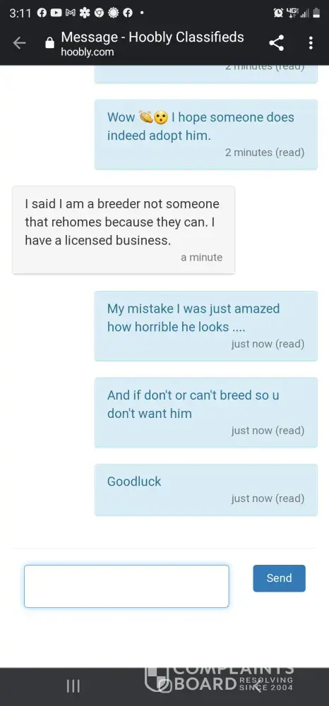 Well I got kicked off hooby after outing warnings of a lady who's selling sick kittens. Trying to protect the next person.