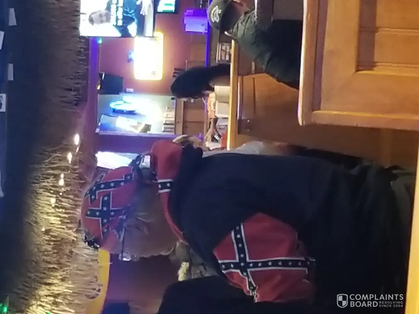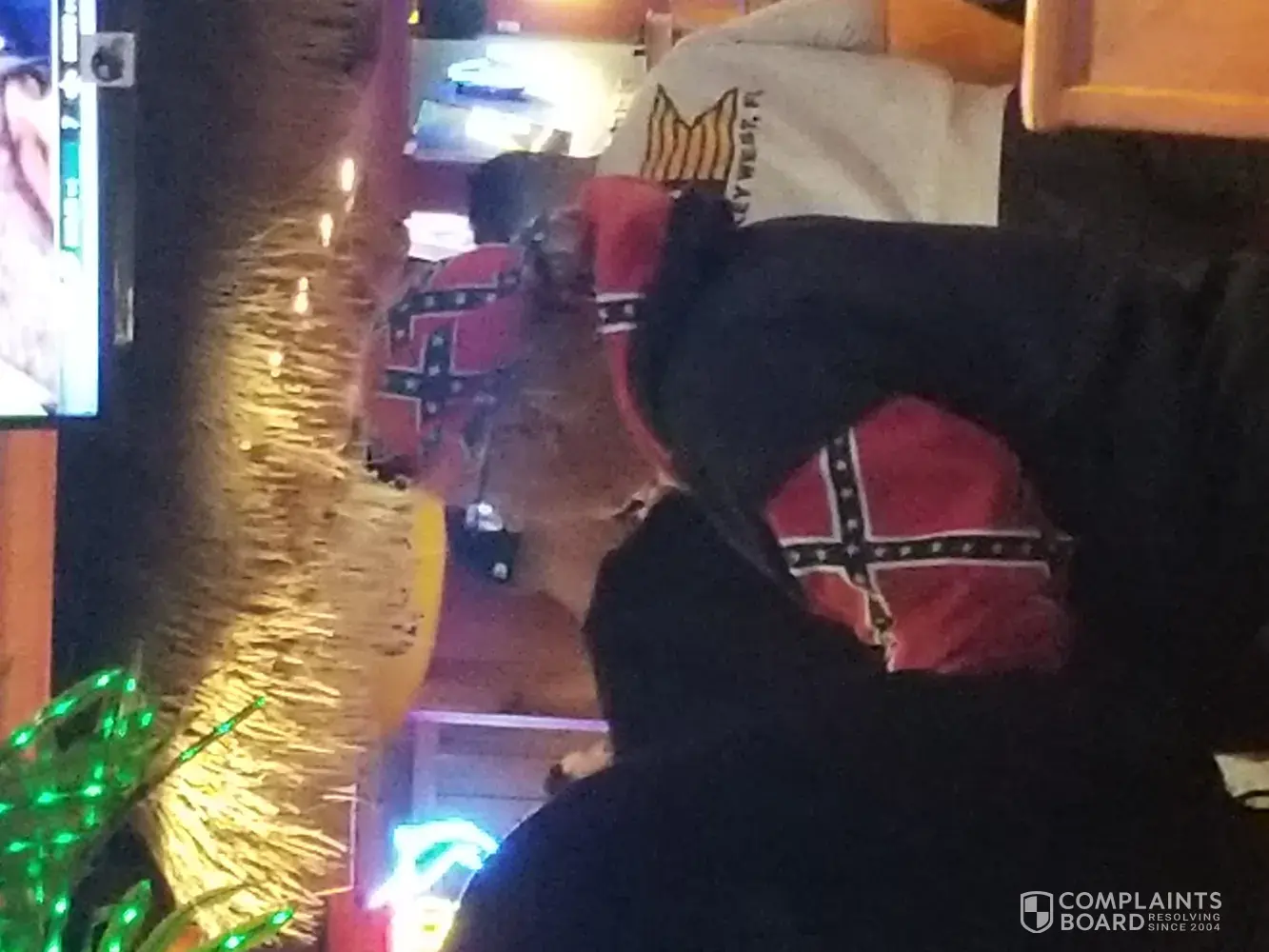 My family and I went to hooters in Farmingdale NY for diner 11/18. Upon being seated we noticed a party of 4 and one of the patrons were wearing the confederate symbol on his scarf and his Jacket. The establishment was a complete mixture of race. I noticed over 70% of people there was staring and some complaining to each other. MY 8 YEAR OLD DAUGHTER KNOWS OF THAT FLAG FROM MY TEACHINGS AND FROM WHAT SHE SEES ON THE NEWS. So she wanted to leave knowing that is means trouble form all the fighting's and killings she has seen. Needless to say my dinner was ruined, we felt something was about to brew and left. In my opinion the managers should have explained to that person that nothing deemed offensive can be worn in the establishment and asked him to leave it in the car. Not all people are going to just pull out their phones and record bullsh*@. some will react in a way you don't want to see nor be around especially if you have your family with you.