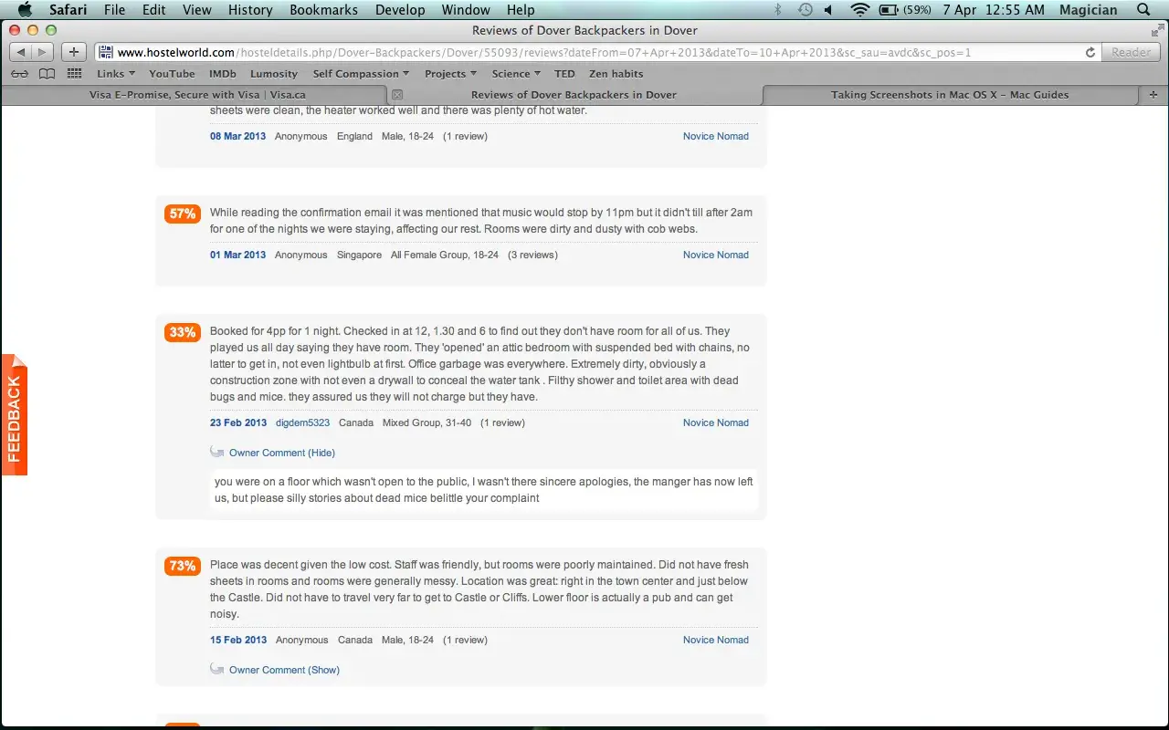 I have booked a hostel for 4 people for one night at the Dover Castle Hostel in Dover, England. The booking was confirmed a few days before we arrived. When checked in at 12, 1:30 and 6pm. Every time we showed up to get into our rooms, they said they have rooms but they don't have the key or the rooms weren't ready. They said hostelworld overbooked but they'll figure something out.. Well at 6pm, we still didn't have our rooms and as alternative, they showed us an attic bedroom which was a construction site, unsafe to stay in and extremely dirty. We had to leave and find somewhere else at 6pm. I reported this to Hostelworld and they said I can't get my deposit back. I don't care about their $50 booking guarantee, it would be sufficient enough to not to be taken advantage of in broad-day light. On top of it, the hostel lied to Hostelworld and said we didn't want to stay as we wanted to stay in the same room. If that was the case would we have waited until 6 pm to make that decision? This was a total lie. And as if this is not enough, the Dover castle hostel claimed that they didn't sell the 4 beds they didn't even have (as if they did we had a place to stay for the night) and charged me for 54 pounds. This is stealing. There is no other words for this conduct. And to add to hilarity of the problem, they replied back confirming that they indeed didn't have enough space for us. Go figure! I've been trying to get this resolved for the last 2.5 months. I get nowhere with the hostel and the hostelworld is just happy to get their 6 pounds back and walk away. They are great, until you have a problem. And when that happens, you are on your own with your money long gone. Guarantee, booking confirmation is all for nothing, just for show. As if it was something, they'd stay behind their word and wouldn't ignore customers when they had problems like this. All they care about is your few dollars. Never again.