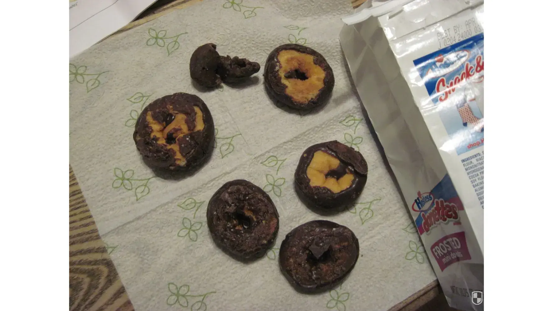 Just wanted to send some pics of the latest bag of your Hostess donuts we purchased from Wallyworld (Walmart). These must have been from a Friday afternoon shift. My wife did eat some of these before she realized just how bad the donuts were at the bottom. We love these little donuts, especially broken in half and dunked in milk. We just think the quality control is missing something. Thank you and have a Blessed Day. I also sent these by text to the 1-800 number. that one piece is just a big wad of chocolate!