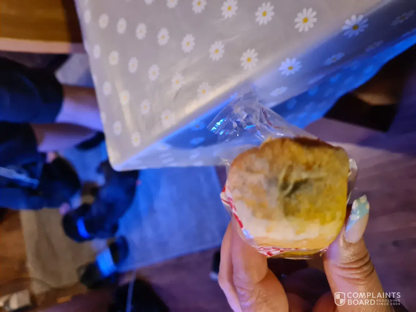 Purchased from a b&m store yesterday. I was half way through eating one and my daughter was close to taking a bite from one before I had noticed the green mould in and around the cake, I would please like a refund and a possible recall on this batch, I've been left feeling really unwell from ingesting part of the rotten twinkie. Batch number is attached below