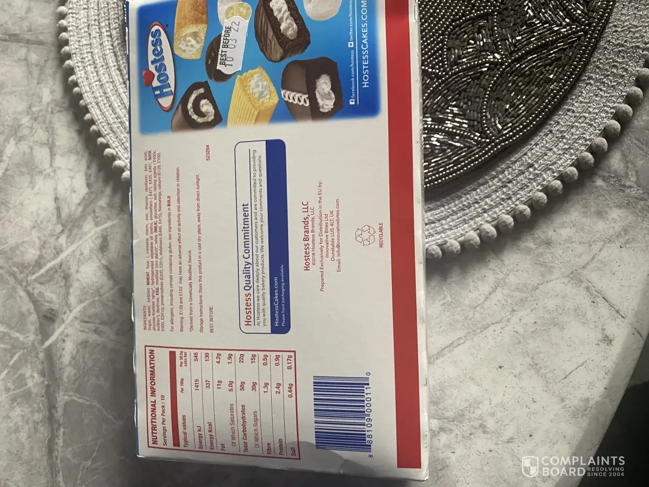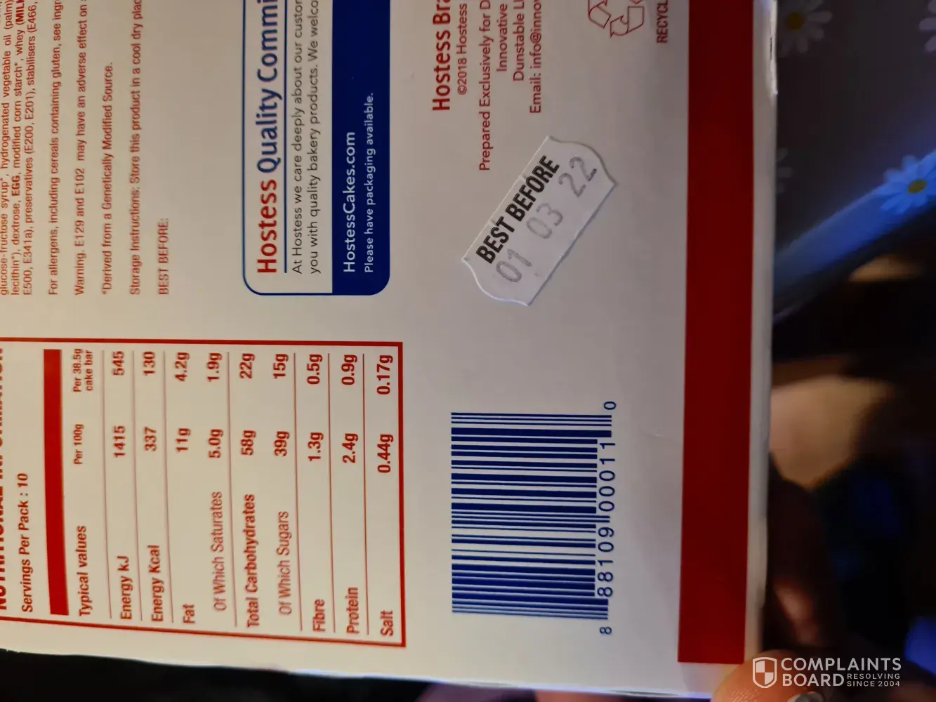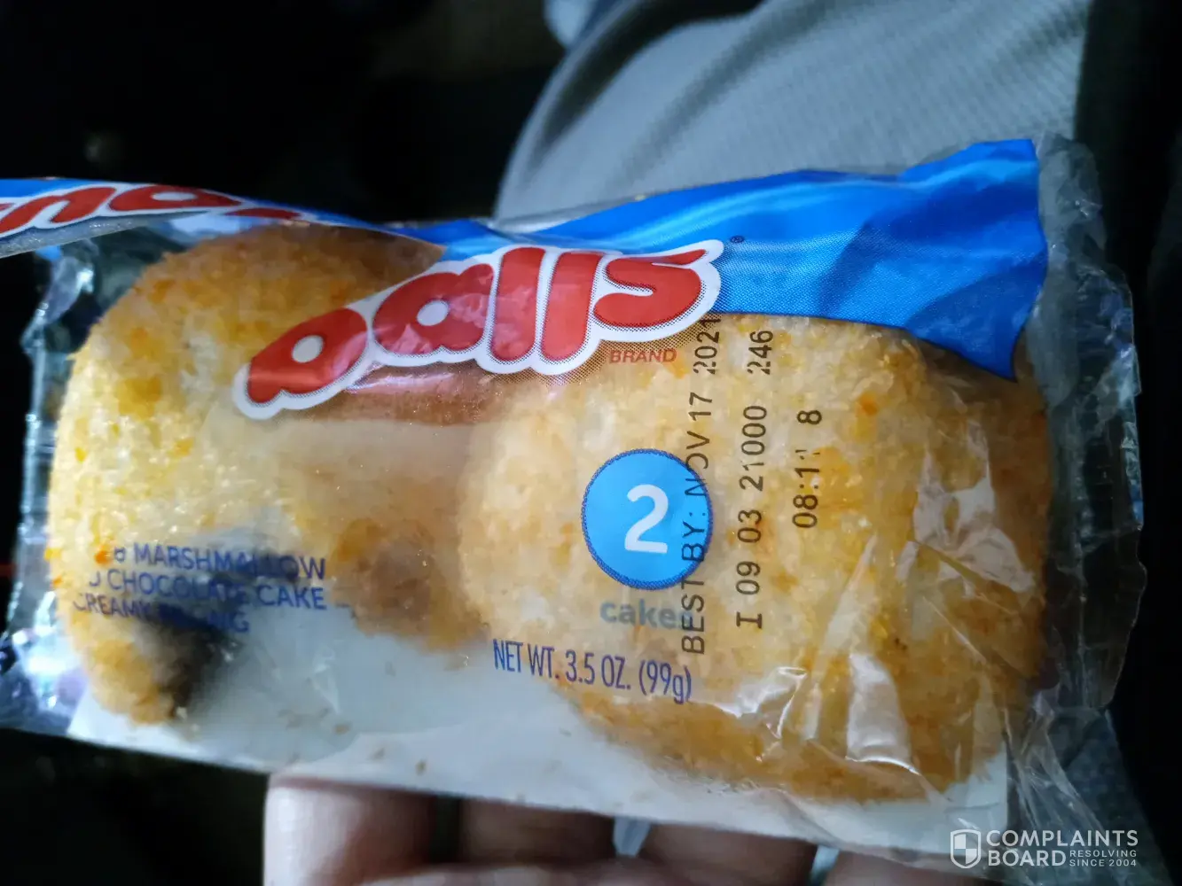 I purchased a box of twinkies from B&M on the 20/11/2021. The best before date is 01/03/2022 they are thick with mould.