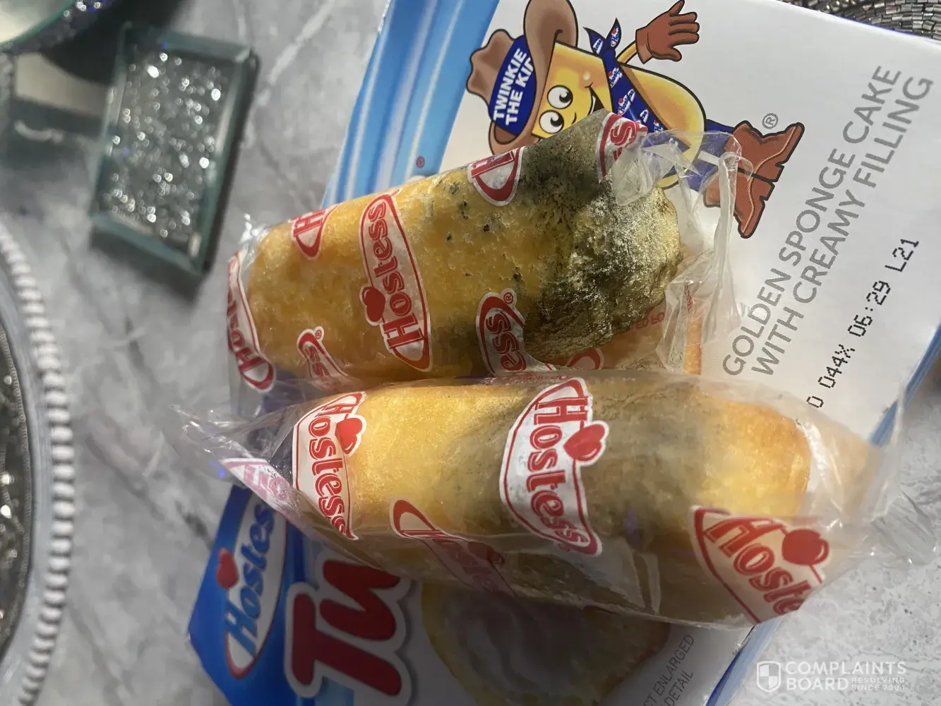 Hello, I purchased 2 boxes of your twinkies on the 26th of November 2021. I bought them from Primark as I'm a huge fan of them. Ofcourse I had 3 the first night and they were delicious but when I got some more out the box the next day I saw that 4 of them had mould on them. This is unacceptable and I'm very disappointed. I would like this matter resolved please and expect and outcome of this matter.