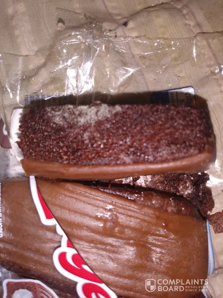 I bought a package of Zingers at the local Meijer gas station. Usually these are an enjoyable treat. However upon opening the package and taking a bite it immediately tasted like diesel fuel! I spit that out, looked at the remaining Zingers and saw a white fluffy mold on them.