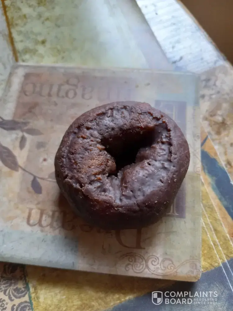 Found snail shell and possible feces in my bag of donnettes. I emptied bag and upon further inspection say the feces and she'll at bottom of bag.