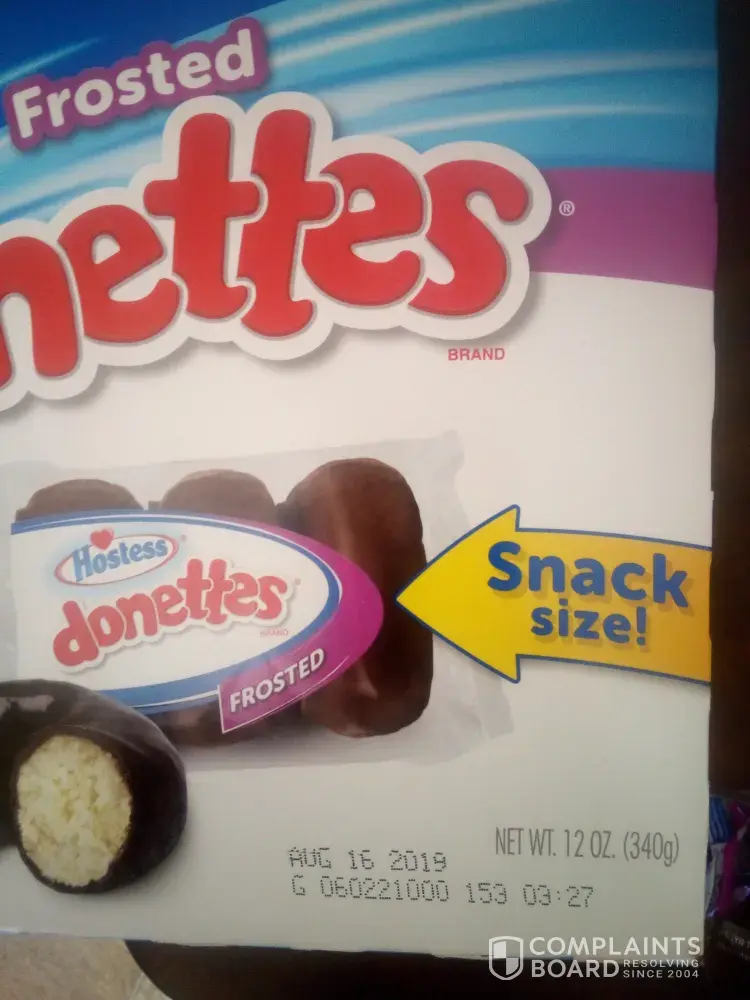 The expiration date was Aug 16 2019, so on Aug 20th 2019, I didn't expect to toss a moldy mini chocolate donut in my mouth . I immediately tasted a burnt plastic, rotten taste and spit it out. The web of some kind of mold was on them. Horrified, I inspected the remainder of the packs and discovered the rest were fine, still threw them away. I'm hoping hostess being a name I grew up with will try and make this right.