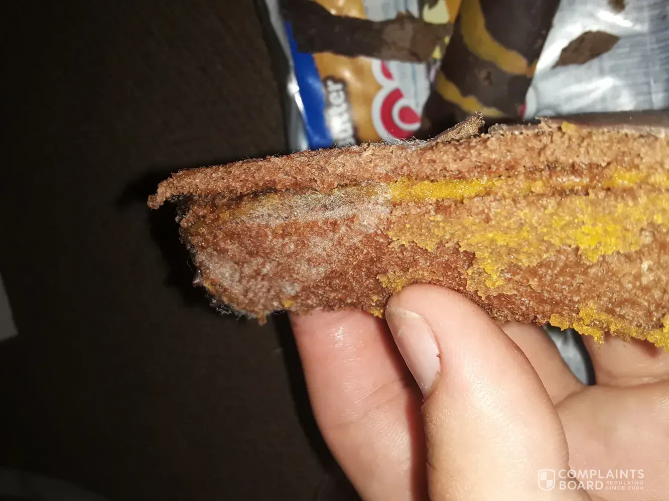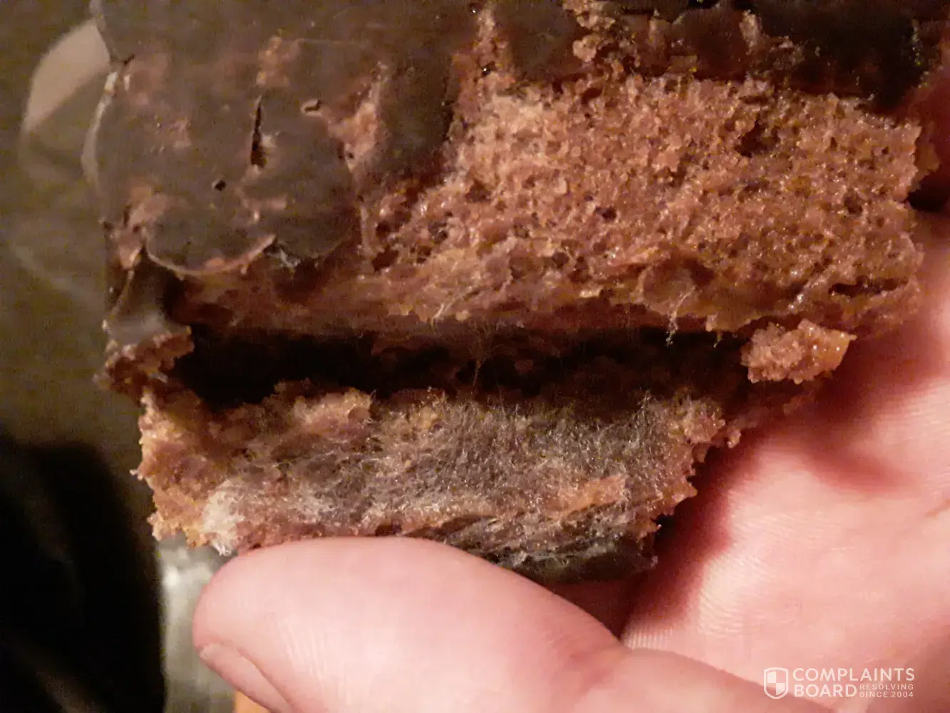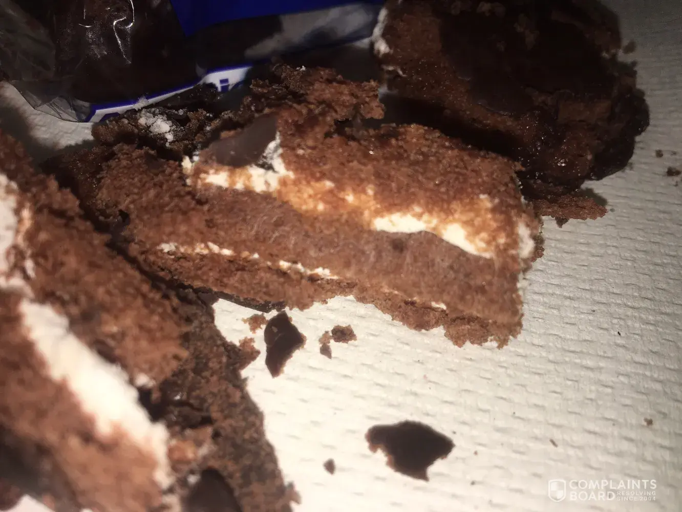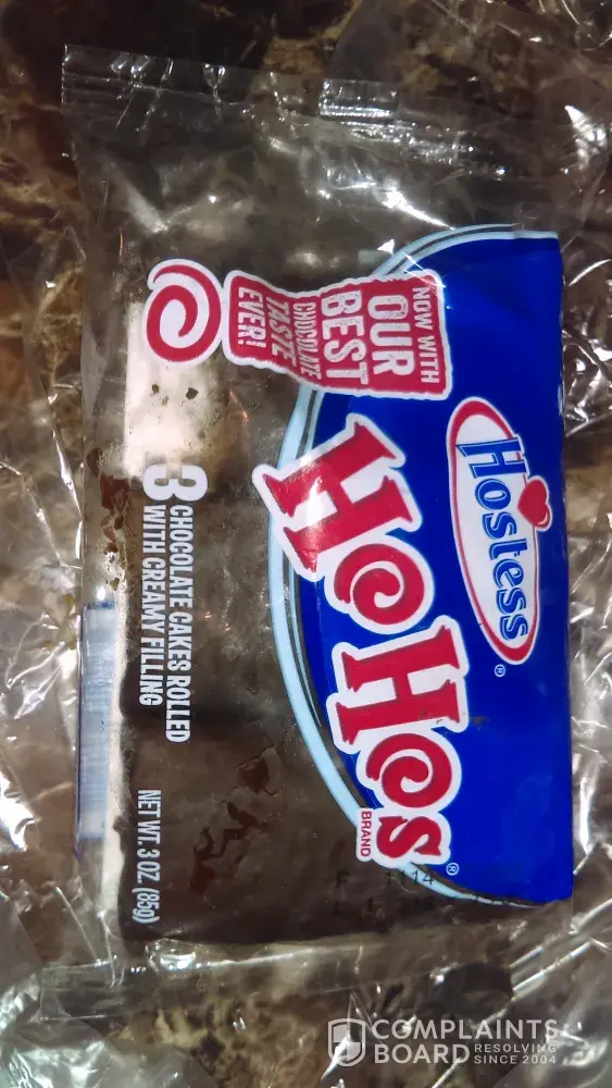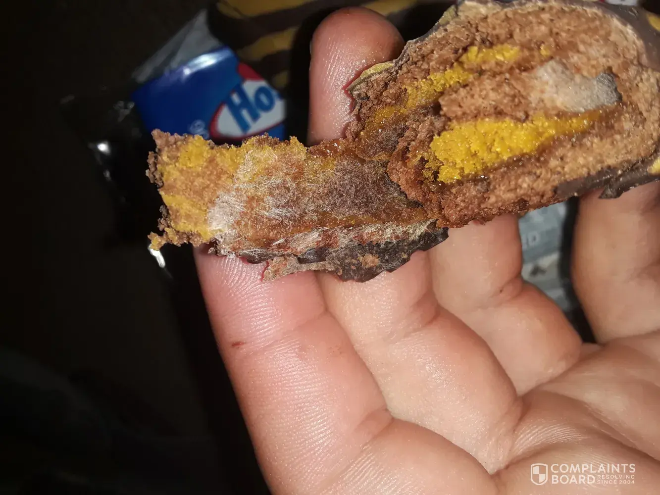 I went and purchased the ‘ HoHo' product through you guys ‘ Hostess ‘ and everything Peer to be just fine. I even reached in the back for the HoHo food product (it's believed the freshest and best was always behind the rest) . . . But when I bit into it I had immediately noticed a horrible taste and right after it was followed by a very unpleasant smell . I looked and there mold. It was disgusting. I did check the expiration and had not expired. I'm just upset I share everything with my 2 year old daughter and it upsets me that she could've bit into it as well