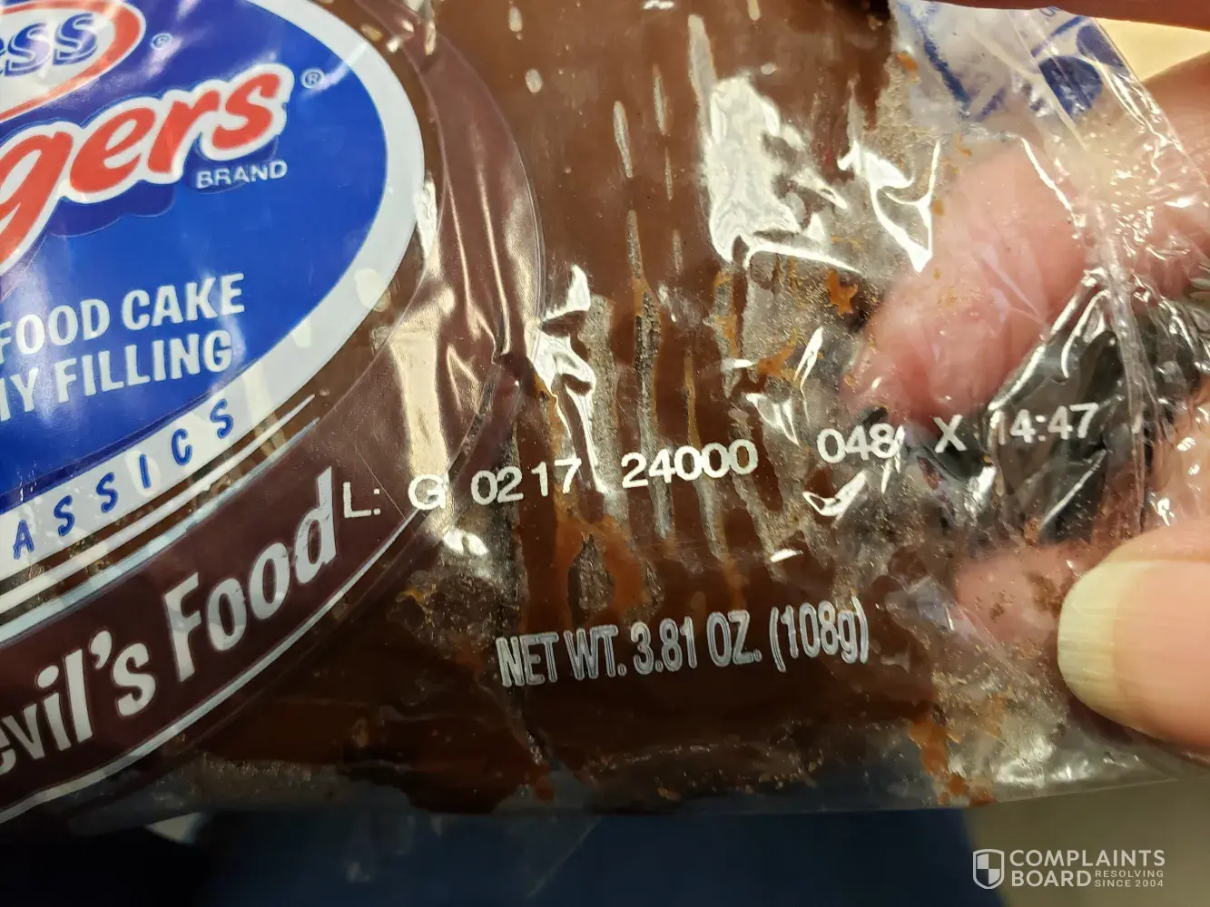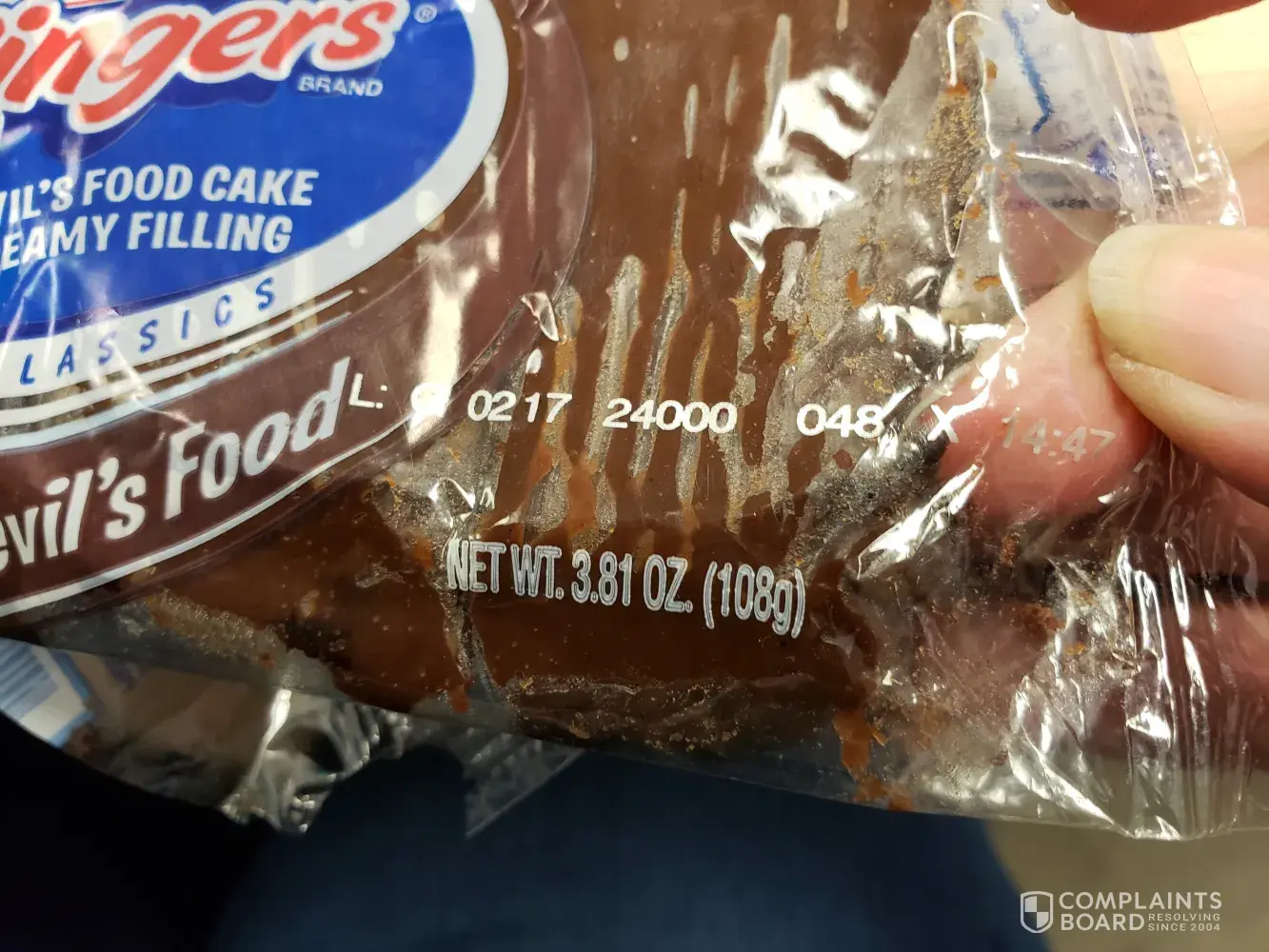 Today, 6-11-2019 I purchased 2 packages of devils food Zingers. when going to open one all 3 of the cakes were molded. As you know Zingers are not cheap and I always buy multiple. Thats how much I love them. And to find this is very disappointing. I have included pictures of the cakes themselves and the best pictures I could get of the codes on the front of the package. Dont even want to open the other package. And just incase you are unable to read the code it is... L: G [protected] X 14:47 A and just so you know the code of the second package is L: G [protected] x 07:10 B