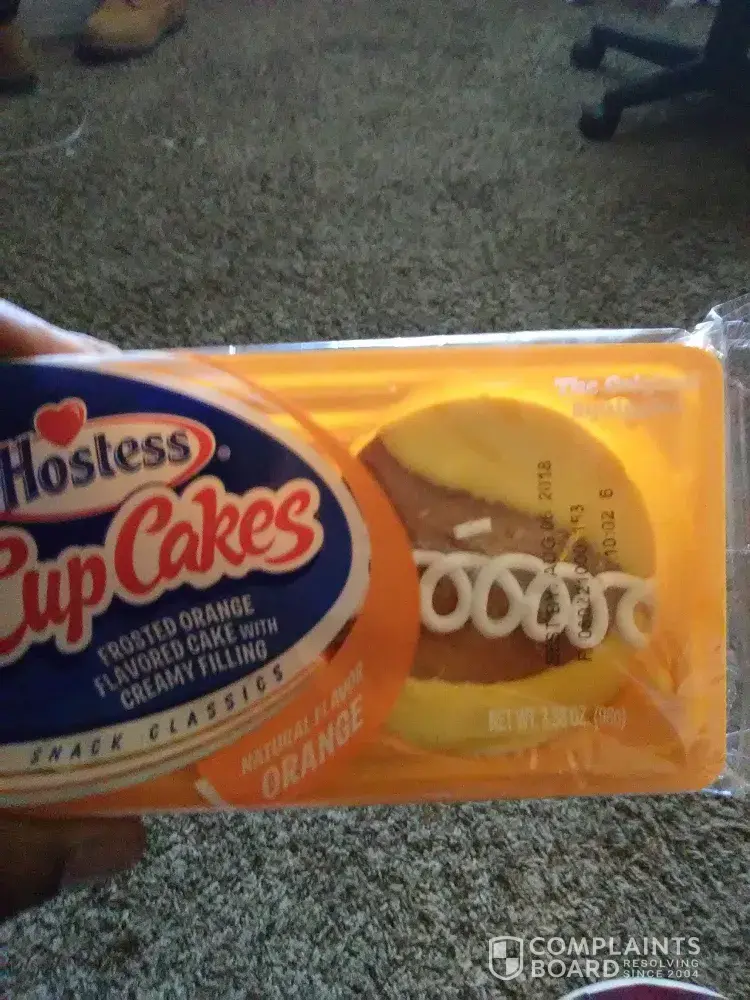 I purchased a pack of your orange Cupcakes from a gas station in Watertown, NY. I was in a rush I admit so I as usual picked up my cupcakes and left. Upon arriving at home I noticed that there must have been a a glitch in the machine because my frosting was partially missing on my cupcakes but the white swirl was perfectly intact. I didn't open the cupcakes at all you can see from the picture provided below. I don't know what happened to my cupcakes but I thought you should be made aware.
