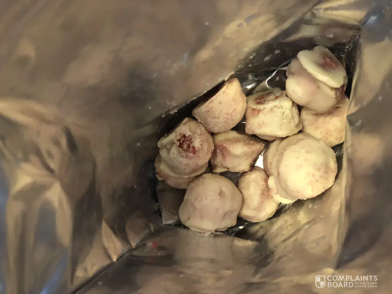 I just picked up a bag of the white doughnuts and they taste awful, made me puke. They taste like a cleaner like windex almost. I grew up with these and they're usually amazing. The identification codes are as follow. L:F [protected] 155X 06:14 D1 and the barcode is. [protected] 4 They are the 298g packaging doughnuts. I was hoping to get reimbursed or sent a free bag, just because these are god awful.