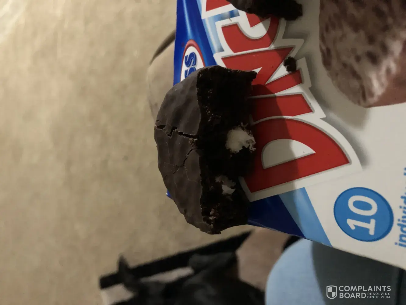 I bought a box of ding dongs at krogers on Friday evening in Riverview MI, for one thing I couldn't believe how small theses ding dongs are for the price that is charged. But my main complaint is there was only 1 ding dongs in the whole box that had a somewhat decent amount of filling in it, the other 9 had almost nothing in them and they were very very dry. I was very disappointed