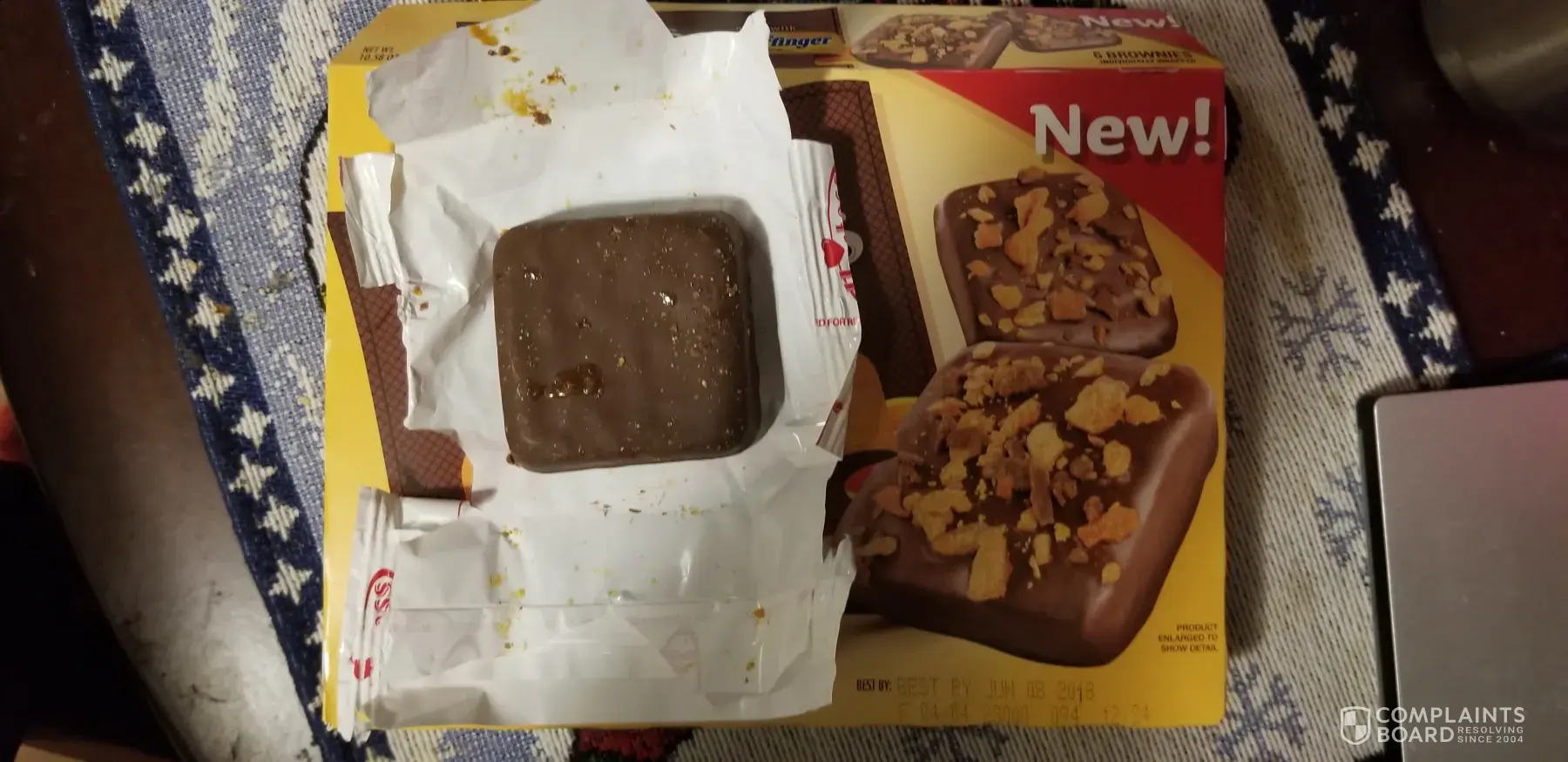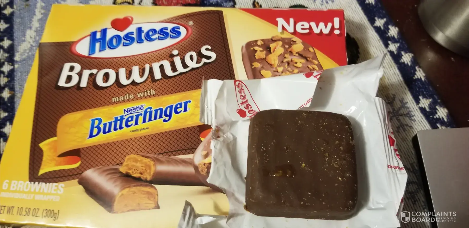 I bought these hoping to have some Butterfinger bits on a brownie and I was sorely mistaken. They have no bits or Butterfinger taste whatsoever. This was really disappointing to someone who gets alot of Hostess products. If you plan on making a product that boasts having some kind of topping it would be nice to have some of that topping on it or at least an attempt to put it on there.