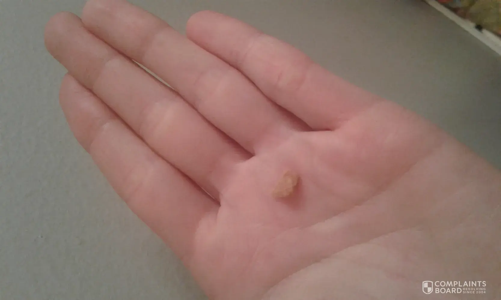 I was eating a package of the chocolate chip mini muffins. As i was chewing one i found a piece of rubber type material that i could not chew through. Pretty sure it didnt belong in your muffin & i couldnt even finish it made me sick to think something not suppose to be in your food is in there. Ive never had a problem before my kids love them and im actually happy my one year old wasnt eating this package of muffins.