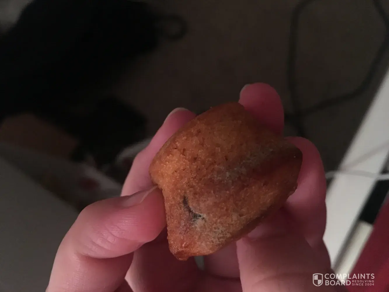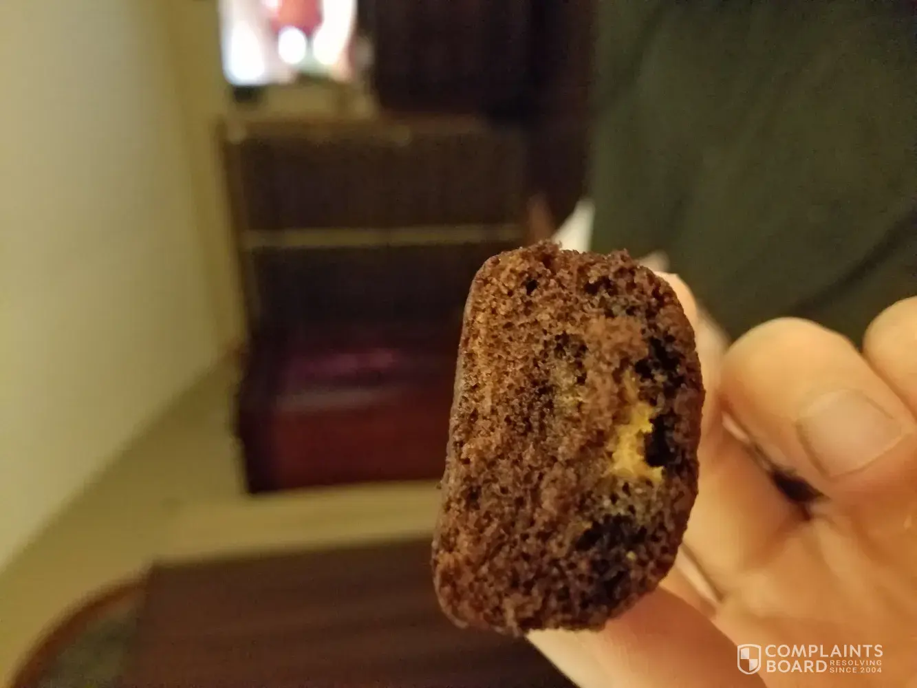 I purchased a box of these for my daughter about a week ago, because they were on sale. Upon my daughter eating a bag of 4 of the mini muffins, she complained about something being "hard" in the muffin, so I had her spit it out in my hand, in my hand was a chewed up muffin along with a hard piece of something that resembled a piece of cardboard. I proceeded to to that package away. The next day or so, my husband was eating a pack of the muffins, he had the same exact hard thing in his muffins. This was extremely disappointing and disgusting because we have no idea what this object in these muffins were.