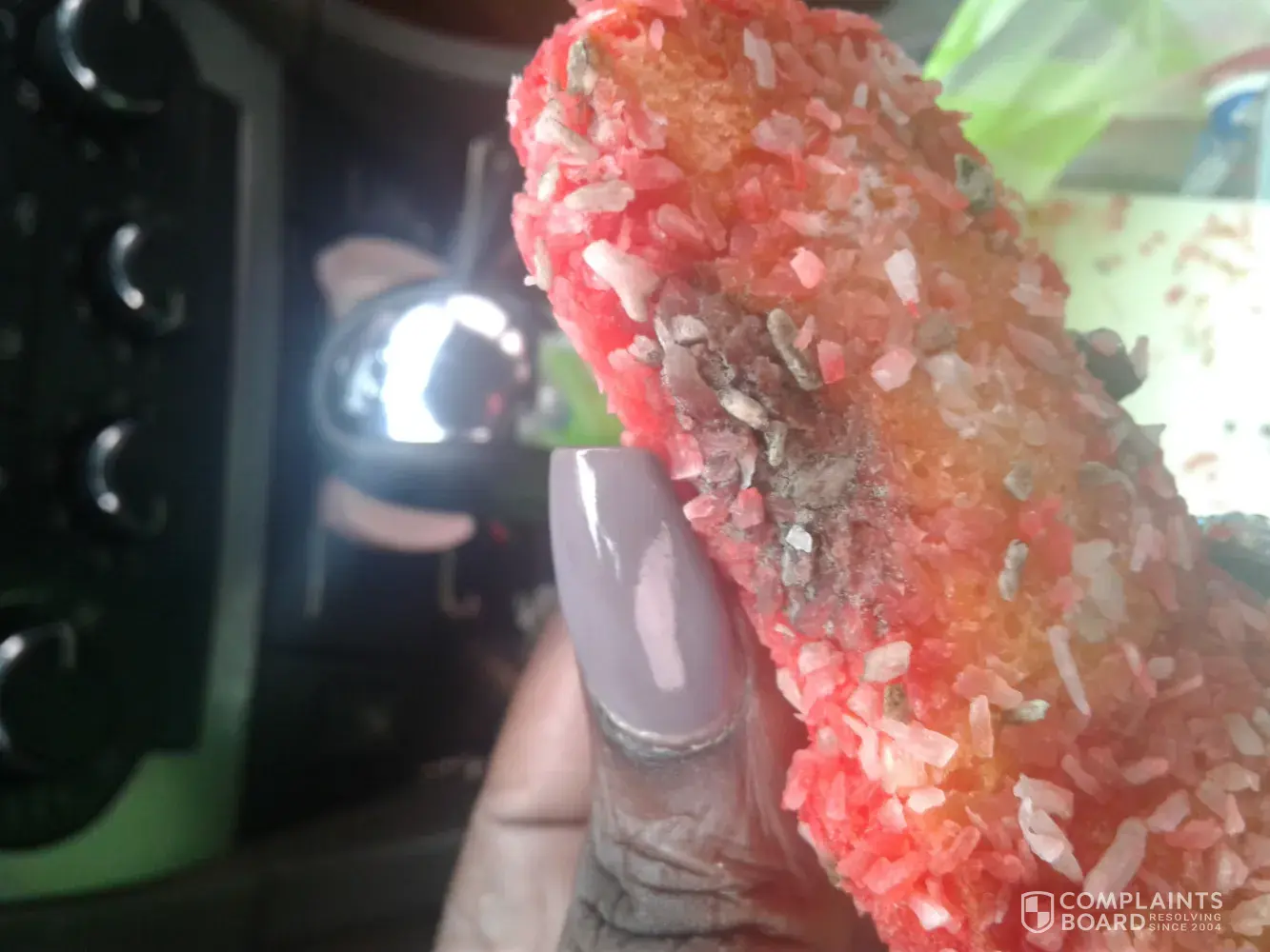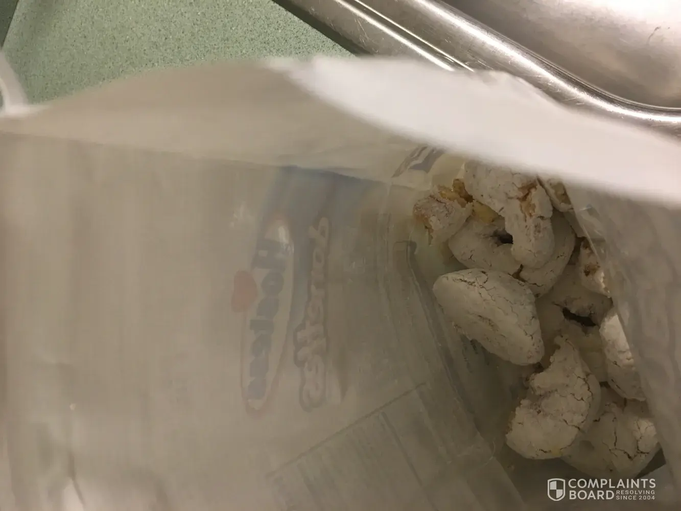 I purchased a bag of mini-doughnuts on Friday, June 30th, 2017. Today is Sunday, July 2nd, 2017. In the bag I have found about 3 doughnuts with blackish dots on them. I threw away the first two and then took a pic of the most recent one I found. The expiration date on the package is August 4th, 2017. I believe this is mold and I wanted to make you aware of it. Many thanks for the years of great products.