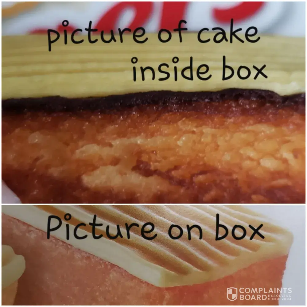 Looks nothing like the picture and barely 2 bites. These are so small. I added a picture to show the size of the actual cake. I think Hostess should reconsider the size and make this bigger.